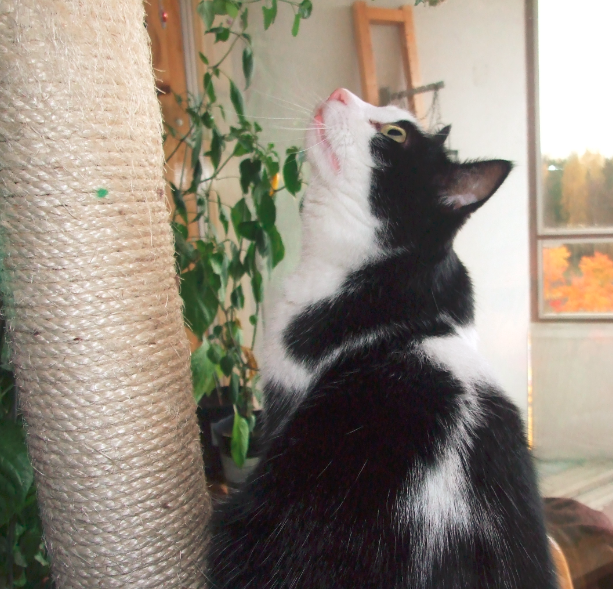 Vieno oli vielä aamunokosilla ja Kauno syömässä aamupalaa, mutta kun ovi avattiin eteiseen ja tintin ääni kuului, niin molemmat kissat hyökkäsivät salamannopeasti eteiseen.